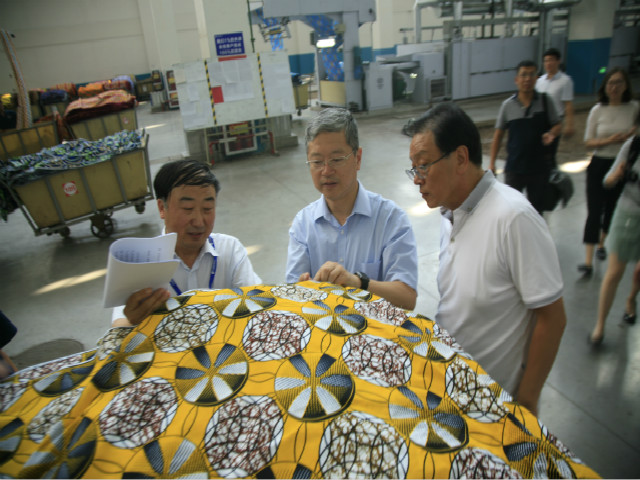 中國紡織工業聯合會副會長夏令敏(中)來公司參觀指導