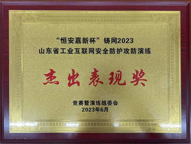 6月19日,由山東省通信管理局組織的“恒安嘉新杯”鑄網(wǎng)2023山東省工業(yè)互聯(lián)網(wǎng)安全防護(hù)技能競賽暨攻防演練在濟(jì)南舉辦,由公司信息中心組成的華紡隊(duì)以卓越的表現(xiàn)獲得由山東省通信管理局頒發(fā)的“杰出表現(xiàn)獎”。