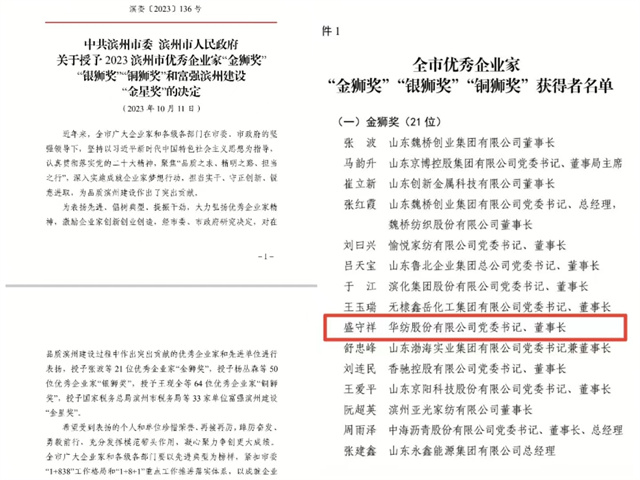 據(jù)了解,這是公司連續(xù)五次榮獲濱州市優(yōu)秀企業(yè)家“金獅獎”榮譽,作為濱州市五大千億級產(chǎn)業(yè)集群中智能紡織板塊的重要組成部分,公司積極打造“數(shù)字華紡”,完成智能綠色工廠項目,改變了傳統(tǒng)的管理思維定式,為傳統(tǒng)產(chǎn)業(yè)通過現(xiàn)代科技手段改造獲得有益的嘗試與探索,成為行業(yè)智能化印染工廠新標桿;在市場方面,公司積極擴大國外市場,開拓國內(nèi)市場,把握國內(nèi)國際最新市場動態(tài),優(yōu)化產(chǎn)品結(jié)構(gòu),準確市場定位,提高產(chǎn)品市場競爭力,實現(xiàn)國內(nèi)國外雙循環(huán);在技術(shù)創(chuàng)新方面,以“做好自己的事情”為前提,不遺余力地推動公司科技進步與創(chuàng)新,堅持依靠科技創(chuàng)新提升企業(yè)的核心競爭力,持續(xù)做好新技術(shù)、新工藝、新產(chǎn)品的研究和應(yīng)用,充分發(fā)揮“八大科研平臺”作用,不斷形成新理論、新工藝,增強持續(xù)創(chuàng)新的能力。