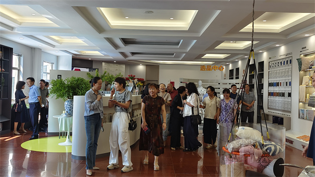 在華紡股份黨委書記、董事長盛守祥的帶領下,大家來到華紡老廠區,那里陳列著一幅幅彌足珍貴的歷史照片,它們鐫刻著大家共同奮斗的往昔歲月。在這些影像前,老員工們的思緒仿佛瞬間被拉回到那激情澎湃的年代,熟悉的面容、難忘的瞬間,一一重現眼前,喚起了無數美好回憶。緊接著,大家又來到華紡股份新廠區,參觀了智云中心、檢測中心、綜合辦公區、服裝面料公司、花布公司、家紡公司、創意中心、工程技術研究院等區域。每一步腳印,皆見證著公司的歷史演進;每一處細節,皆彰顯出公司對技術創新與產品升級的執著追求。